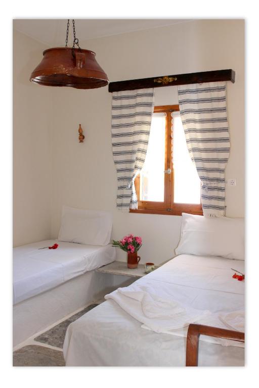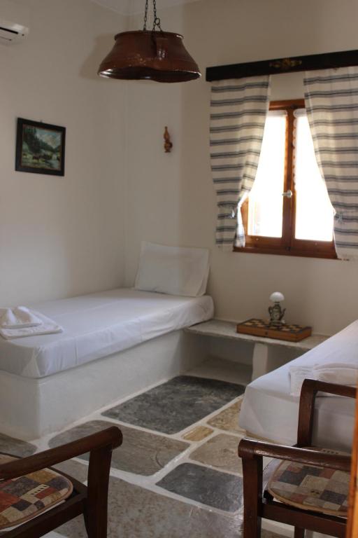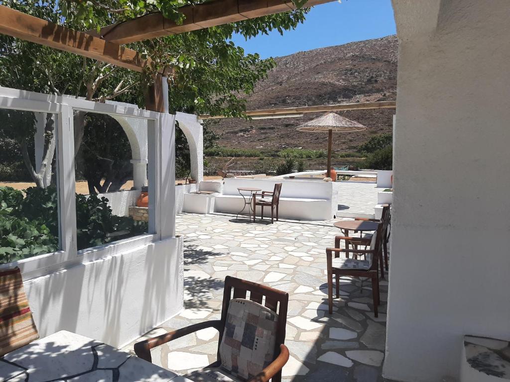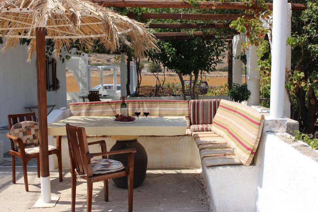The beach is just a 150m walk from the accommodation, where you can find sunbeds and a cantina selling drinks and snacks. There are family taverns with delicious, honest greek food located nearby and there is a bus station in the neighborhood that takes passengers to Chora and back. Agia Theodoti monastery is a 10min walk from the accomodation and Homer's grave is a 20 min drive.